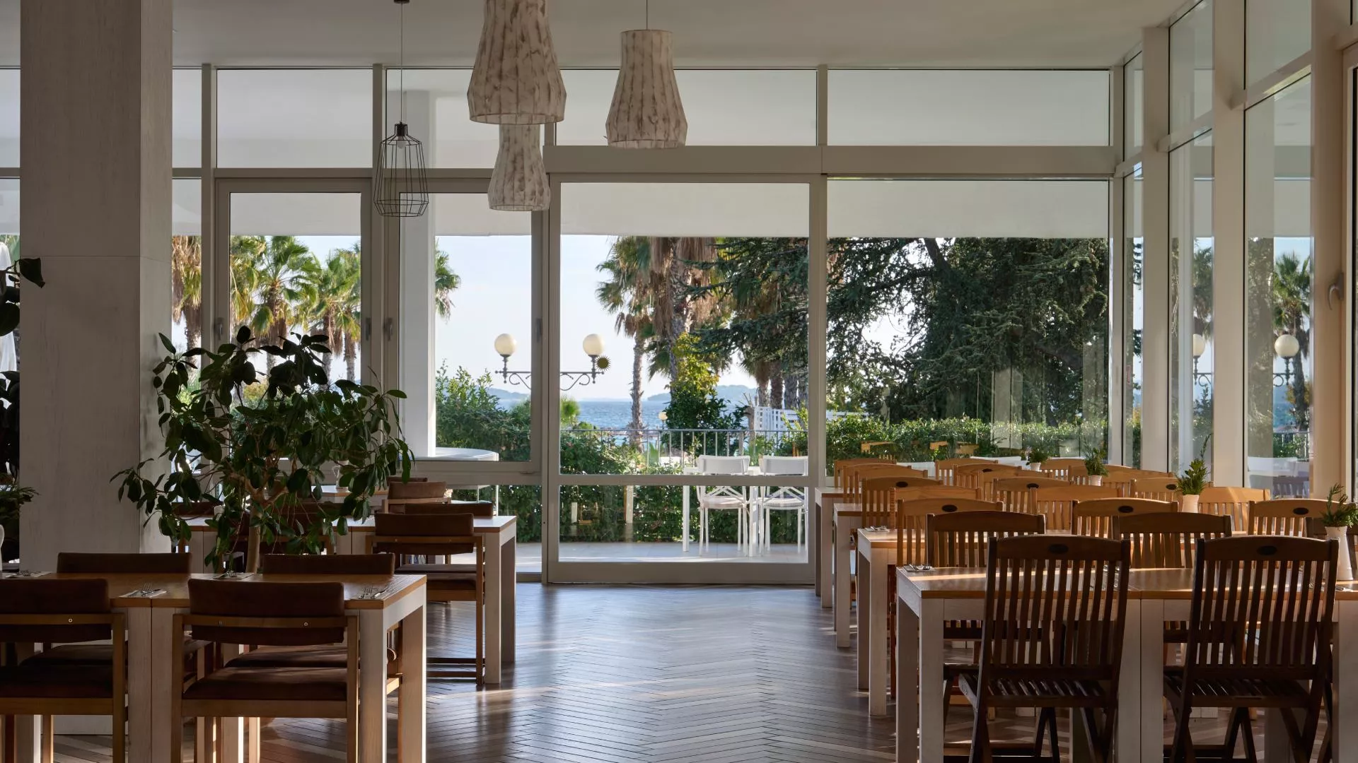 Unter weißen Säulen und Holzbalken bietet die Trattoria ungezwungene Eleganz beim Essen unter freiem Himmel direkt am Meer. Wählen Sie aus verschiedenen Kulissen: eine schattige Terrasse direkt über dem Strand, eine Plattform auf der Promenade mit Panoramablick auf die Inseln oder eine ruhige Dachterrasse unter dem sanften Abendhimmel.
