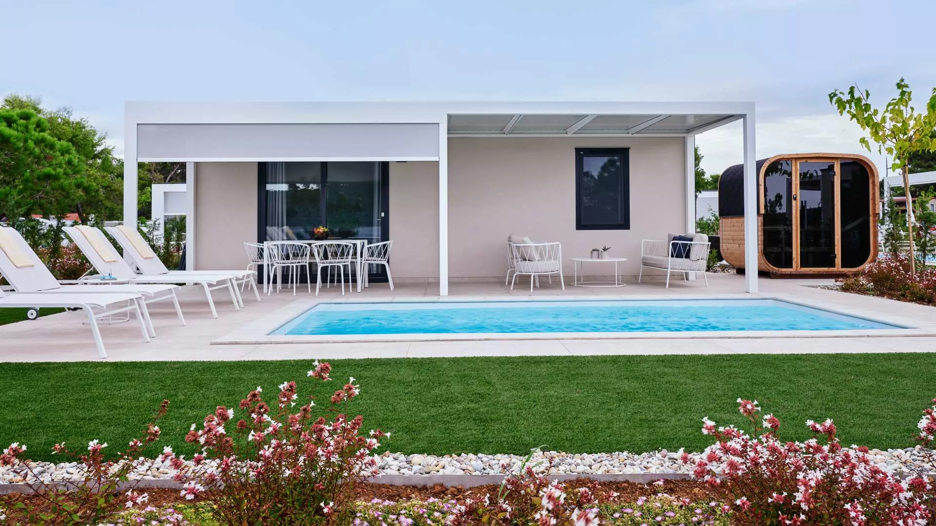 Wo die Freiheit des Campings auf die Eleganz eines Resorts trifft: Die exklusiven Strandvillen und Deluxe-Mobilheime von Amadria Park bieten eine neue Art des Urlaubs an der Adria. Umgeben von Grün und nur wenige Augenblicke vom Meer entfernt, vereint jedes Domizil Privatsphäre, Design und Komfort.