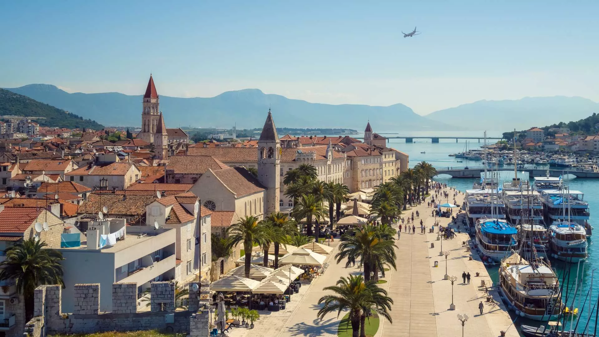 Framed by palm-lined promenades and island views, Trogir invites you to pause. Its Romanesque-Gothic core—inscribed as a UNESCO World Heritage Site—remains one of Croatia’s best-preserved historic towns. Terracotta rooftops and narrow stone alleys lead to harbours, hidden courtyards, and bell towers chiming above café-lined squares—ideal for cultural travellers and coastal wanderers alike.