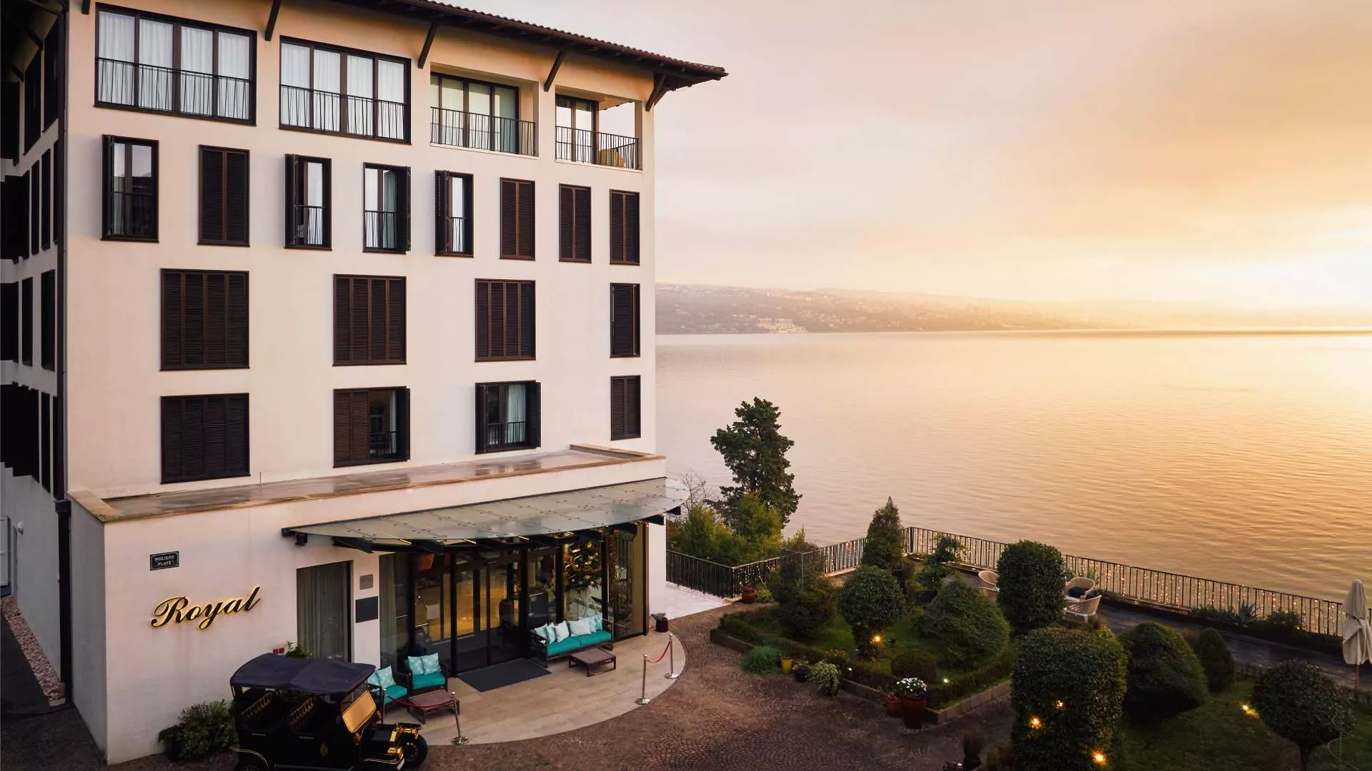 A gondozott, francia stílusú kertek mellett elhelyezkedő Royal Square egy elegáns, szabadtéri terasz, amely az opatijai kikötőre és a lenyűgöző Kvarner-öbölre néz. A mintás kőburkolat látványos hátteret biztosít a nagyszabású, akár 1000 fős rendezvények számára. A tér könnyedén alkalmazkodik az igényekhez, legyen szó üdvözlőitalokról, koktélestekről, tematikus vacsorákról vagy termékbemutatókról. A személyre szabott étel- és italcsomagok tovább emelik az alkalmak színvonalát, biztosítva, hogy minden itt tartott esemény különleges és emlékezetes legyen.
