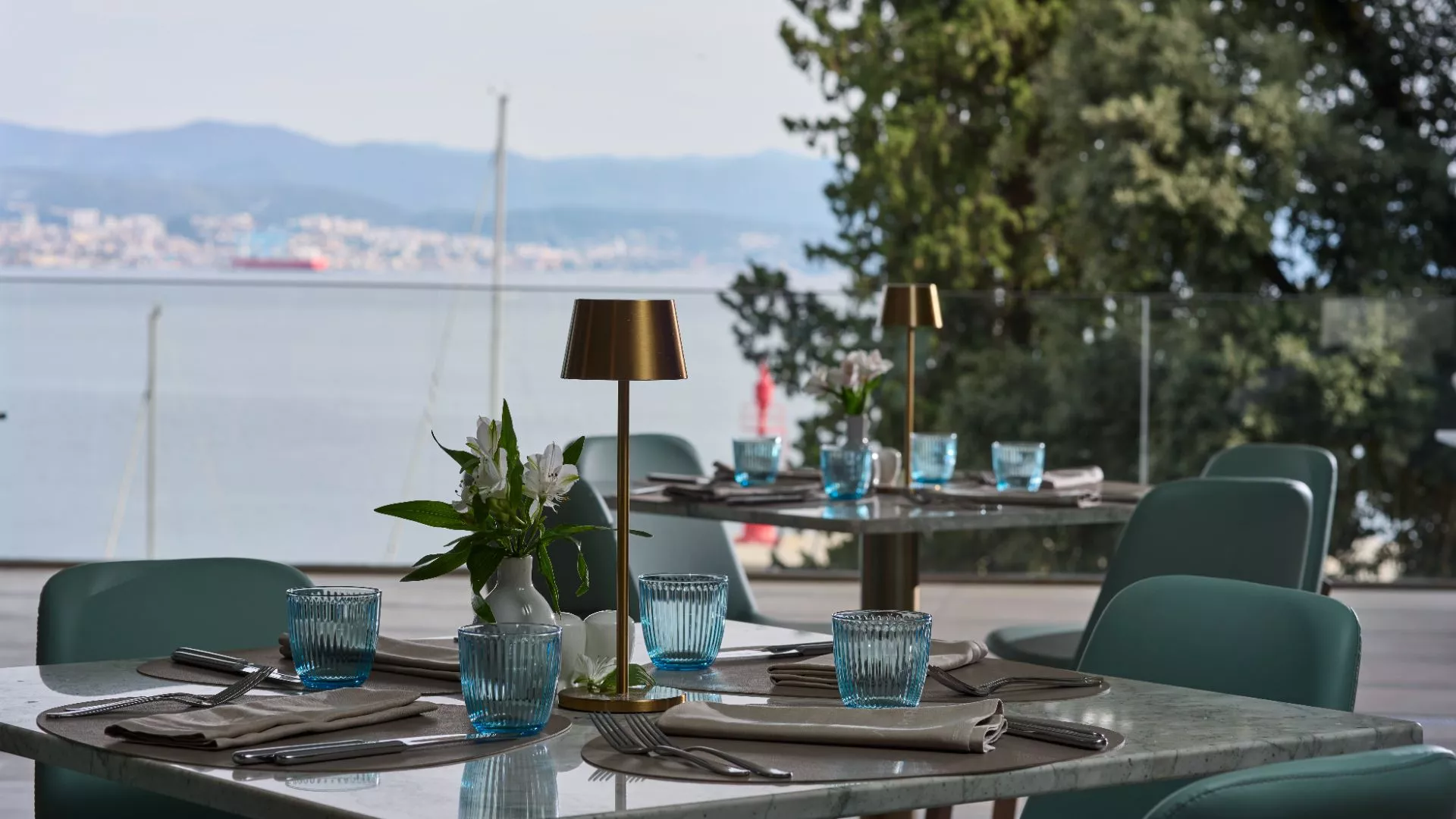 A szálloda szívének stílusos találkozóhelye, ahol a lobby bár hangulata könnyedén ível át a reggeli kávézástól az esti aperitifekig és koktélokig. A teret természetes fény tölti be, miközben a Kvarner-öbölre néző terasz a horizont felé vonzza a tekintetet.