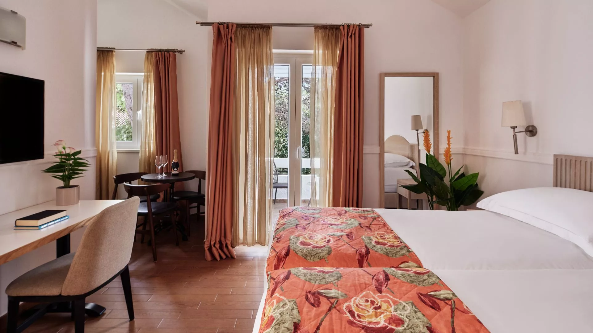 Ideális kisgyermekkel utazó családok számára, ez a 30 m²-es apartman egyszerre kínál kényelmet és magánéletet. A különálló, emeletes ággyal felszerelt gyerekszoba saját kuckót biztosít a fiatal vendégeknek, miközben a szülők a nyitott terű, franciaágyas hálószobát és a kompakt konyhát élvezhetik. A zuhanyzós fürdőszoba és a privát erkély tovább növeli a kényelmet. A modern felszereltség része a légkondicionáló, a Wi-Fi és a síkképernyős TV műholdas csatornákkal. A legfeljebb négy vendég számára tervezett apartman kiváló választás azoknak a családoknak, akik gondtalan, pihentető nyaralásra vágynak a dalmáciai Amadria Park Campingben.