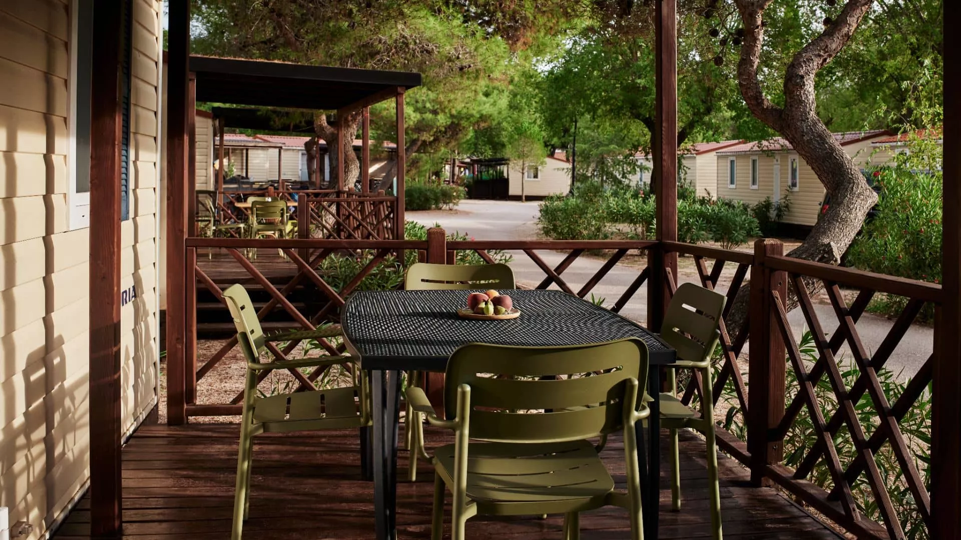 Soggiorna all’Amadria Park Camping Sebenico (Šibenik) in una casa mobile di 34 m² progettata per ospitare fino a sei persone. Dotata di un letto matrimoniale e quattro letti singoli, una cucina completamente attrezzata, una zona giorno, un bagno con doccia e WC separato per una maggiore comodità e una terrazza arredata, è perfetta per famiglie o gruppi numerosi di amici. Immersa in un ambiente naturale tranquillo, circondata dalla vegetazione mediterranea, vivrete la libertà del campeggio con il comfort dei servizi moderni. Rilassatevi all’aperto, cucinate insieme o esplorate le spiagge vicine, i parchi acquatici e le attrazioni. Ideale per chi cerca un campeggio a Sebenico o una vacanza in casa mobile in Croazia, questo rifugio unisce natura e ospitalità di qualità per una rilassante fuga sull’Adriatico.