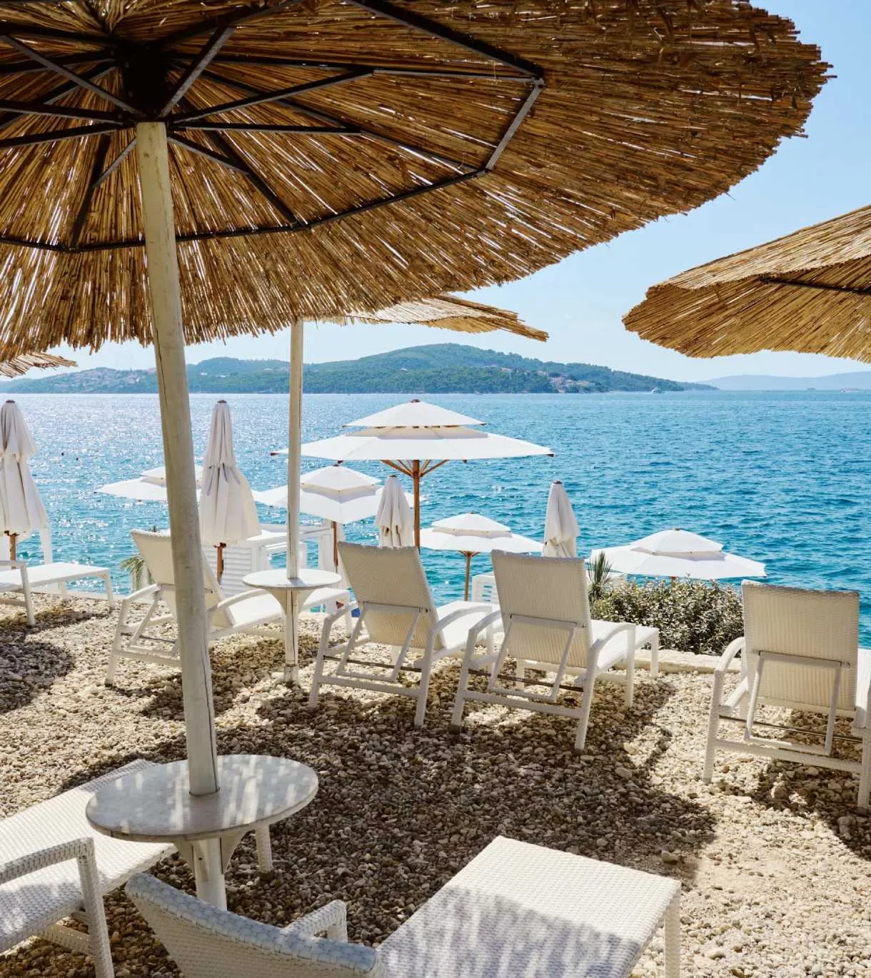 This Adriatic stretch blends sun-warmed pebbles and tiled terraces with sparkling, clear waters. Spend sunlit hours on loungers, then freshen up in convenient showers and changing cabins close to the shore. Dine on Mediterranean dishes at the beachfront à la carte restaurant or sip chilled drinks while watching waves roll in at breezy beach bars. Young holidaymakers find adventure in a safe, dedicated playground steps from the water. For a change of scenery, hop on a scenic boat ride that glides straight to UNESCO-listed Trogir.